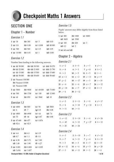 Read Checkpoint Maths 1 Answers Hodder Plus Home PDF
